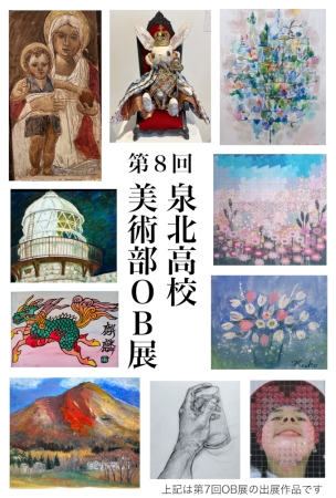 第8回 大阪府立泉北高校 美術部 OB展2026/ 4/23(木)~ 4/27(月)12:00~18:00(最終日は、17:00まで)展示会場:[89]画廊 展示室1・2・3