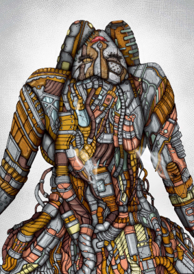 無機質な構造とキャラクターを掛け合わせた作品を展開している。